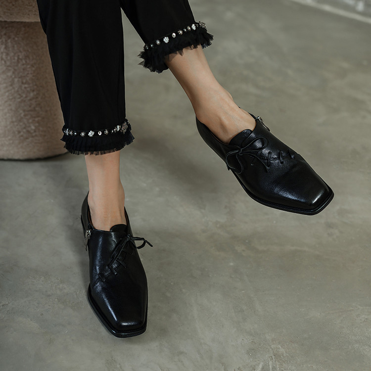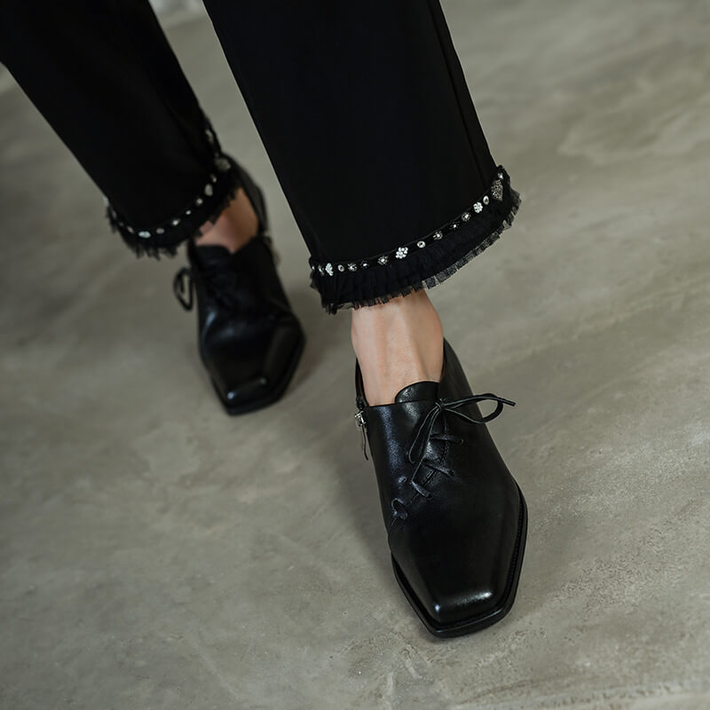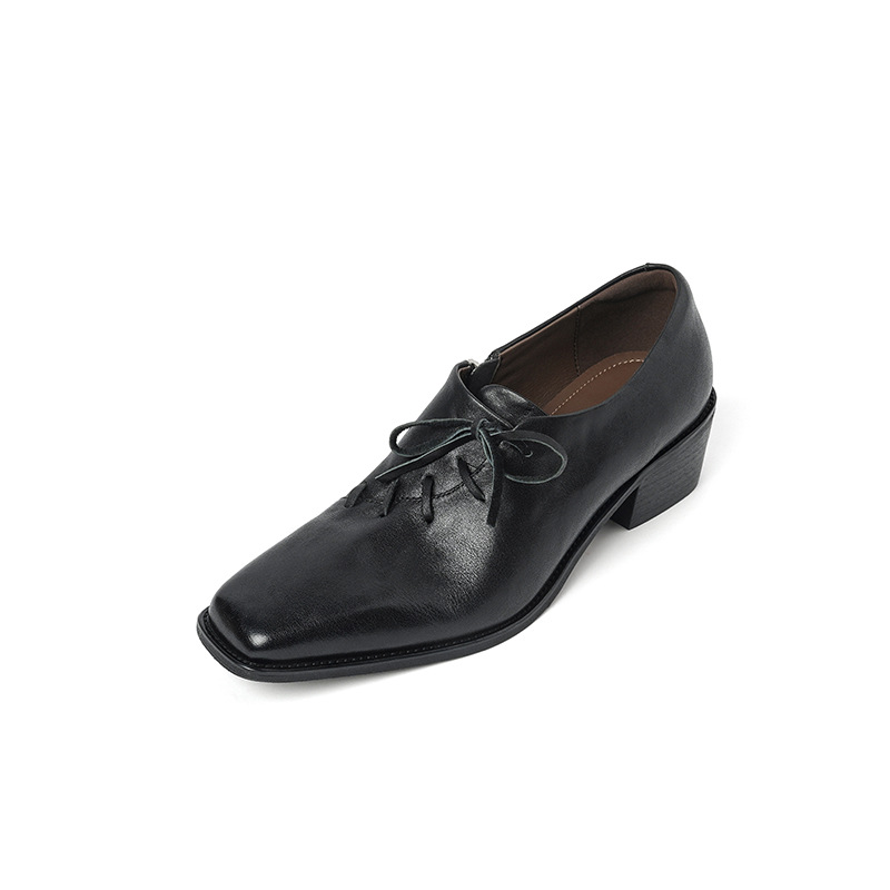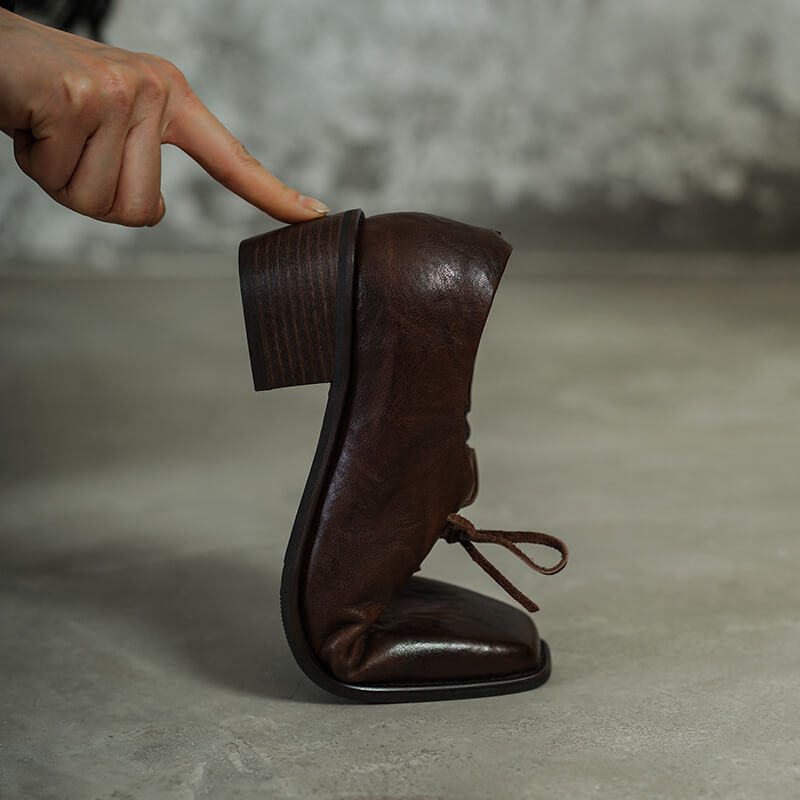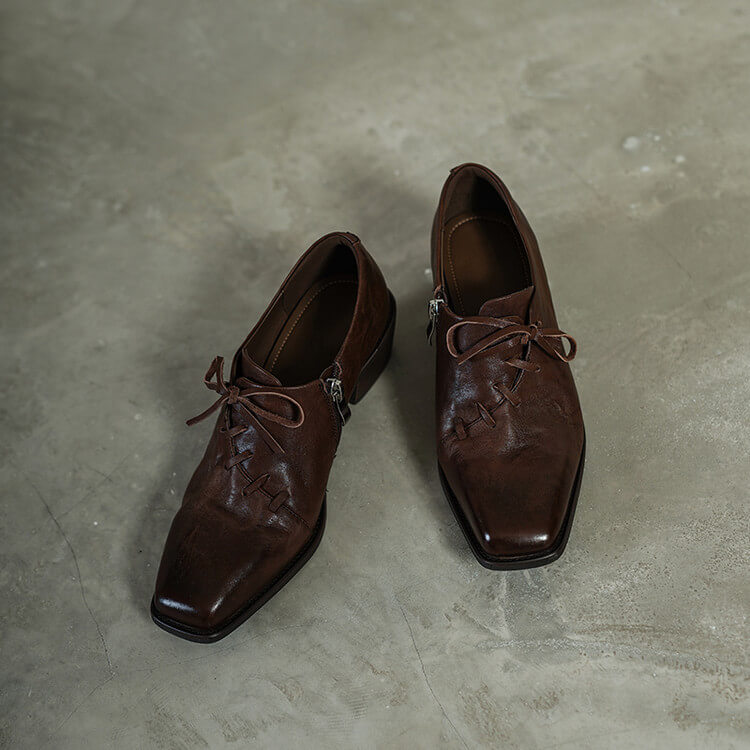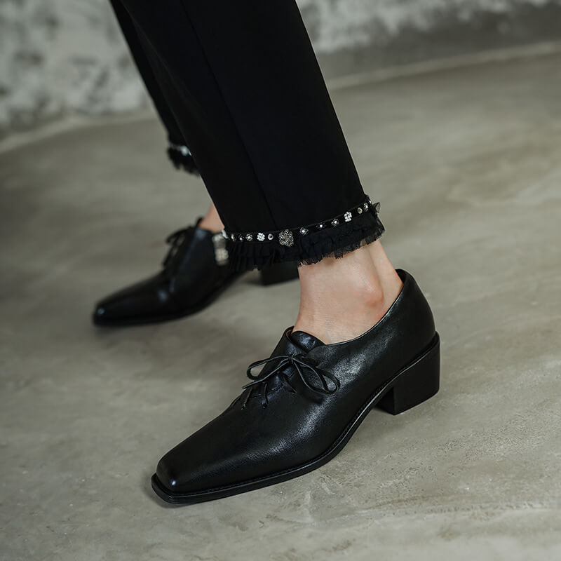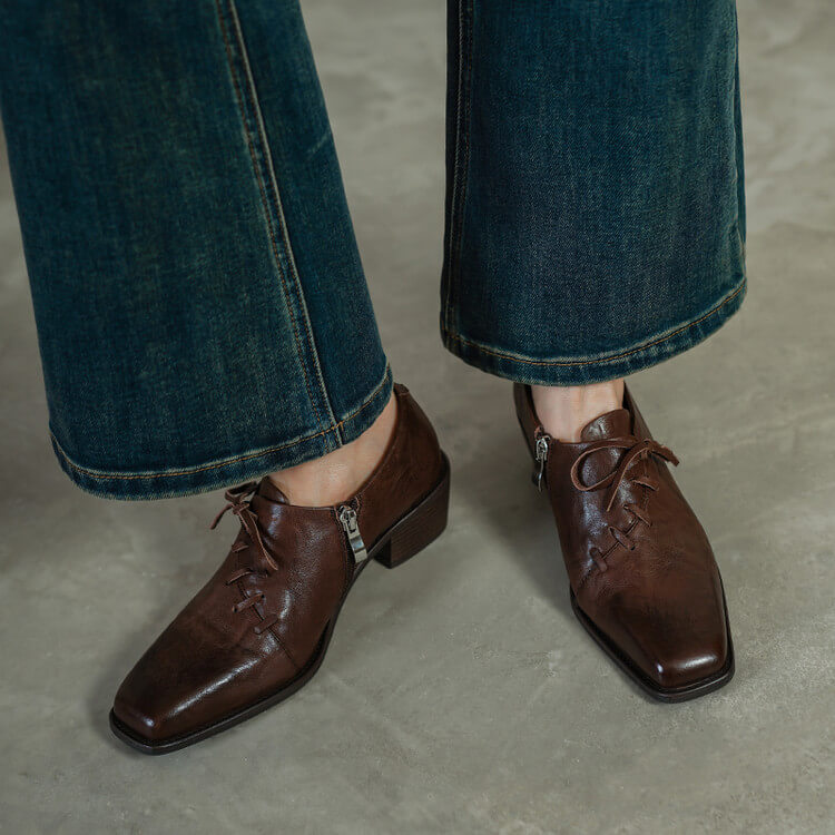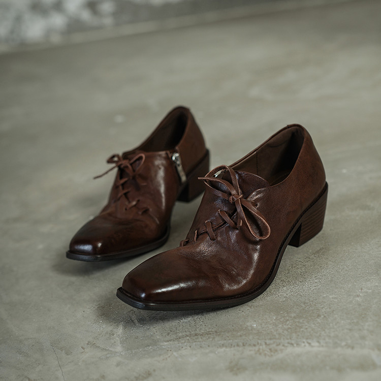 Timeless Washed Cowhide Womens Square Toe Block Heel Oxford Shoes