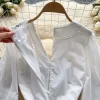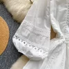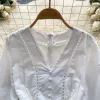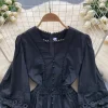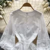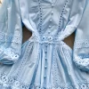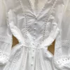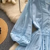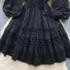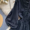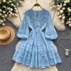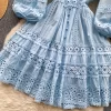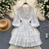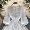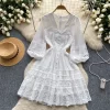 This women’s fashion dress is perfect for spring and summer. It features a vintage elegant design with a V-neck and lace detailing. The single-breasted lantern sleeve puff dress has an ankle-length and an A-line silhouette. It’s made of polyester and cotton, offering a slim fit. The casual style makes it suitable for various occasions.