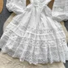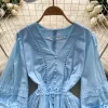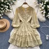 Vintage Elegant V-Neck Lace A Line Dress for Women Spring Summer