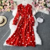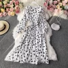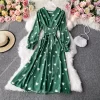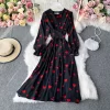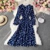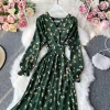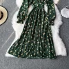 Vintage Floral Polyester A-Line Dress for Women Autumn Full Sleeve Empire Waist Mid-Calf