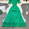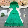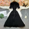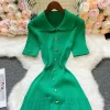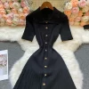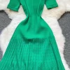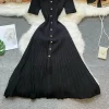 Step into style with this Vintage Knit A Line Maxi Dress. It features a turn-down collar and button details that add a touch of elegance. Made from synthetic fiber knitting, it offers a medium stretch for comfort. The empire waistline and ankle-length design flatter your figure. Perfect for office wear, this dress is suitable for spring and summer.