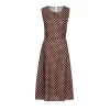 - Design Details: O-Neck, Sleeveless, Natural Waistline, Mid-Calf Length, A-Line Silhouette, Dot Print