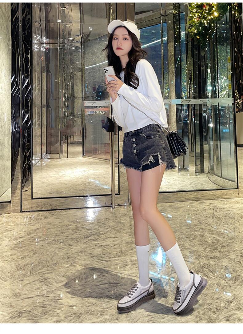 Woman Shoes New Fashion Woman Casual High Platform Leather Women Casual White Shoes Breathable Sneakers Women’s Vulcanize Shoes