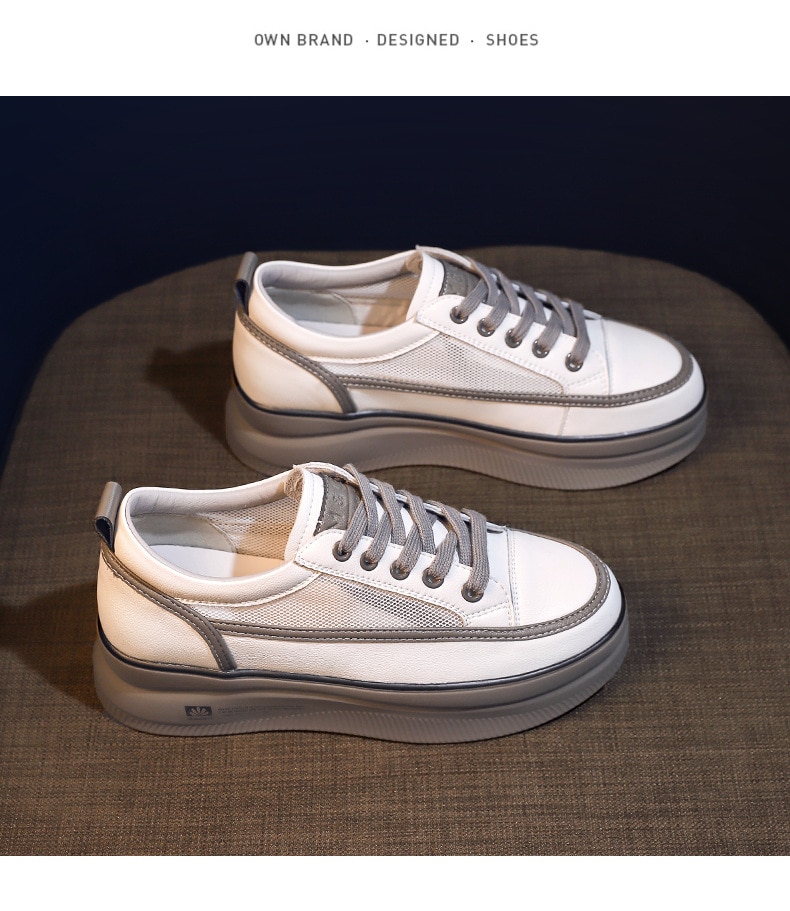 Woman Shoes Summer New Fashion Shoes Woman Casual Breathable Lace Leather Simple Women Casual Shoes Sneakers Breathable Mesh
