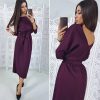 Sexy Dress Women Party Night Fashion Sexy Low Cut Solid Color Off Shoulder Hollow Out Bandage Long Sleeve Women Mini Dress