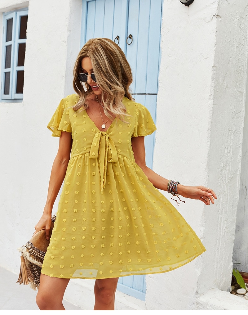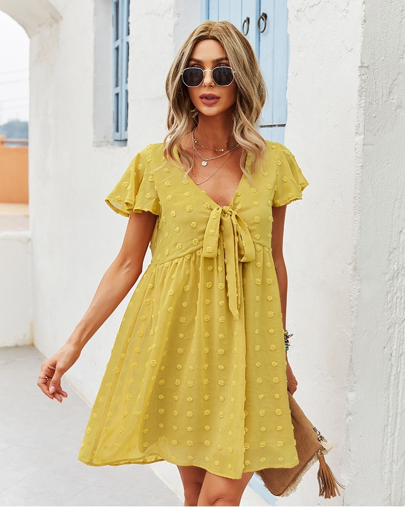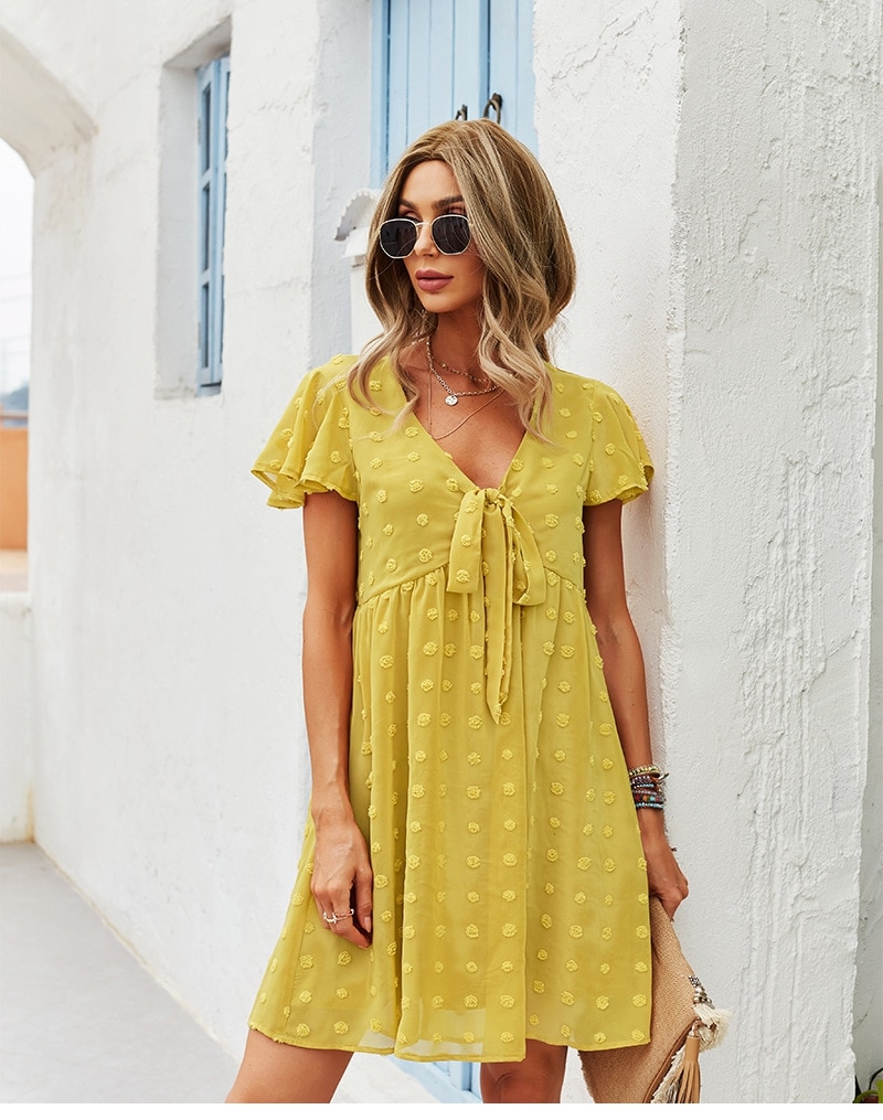 Women Fashion Casual Sexy Solid Spring Summer Style Dress High Waist Short Sleeve Bandage Female Dress