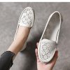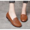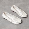 Breathable Genuine Leather Summer Shoes Woman Flat Heel Hollow Out Flats Slip On Shoes For Women Soft