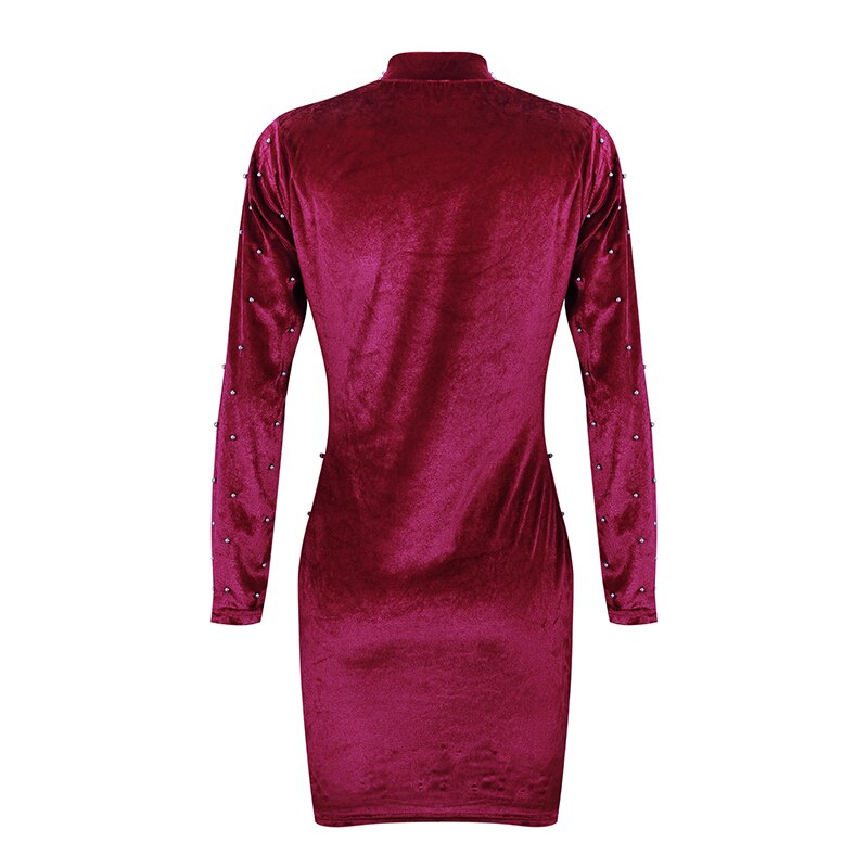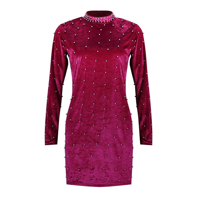 Women Party Night Club Wear Bodycon Dress Sexy Turtleneck Rivet Long Sleeve Skinny Women Mini Dress Sexy Dress