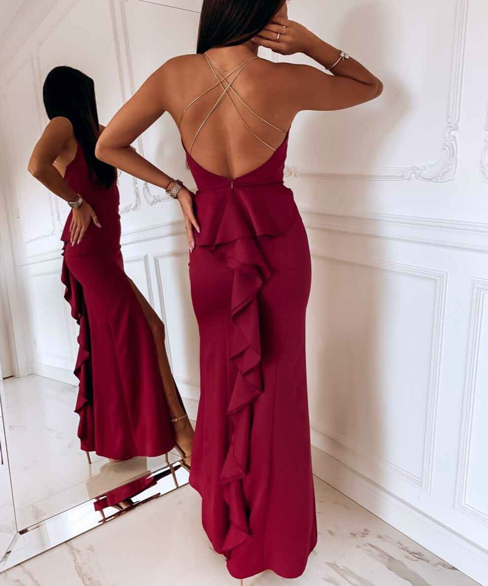 Women Party Night Maxi Dress Women Sexy Off The Shoulder Ruffled Ruffled Backless High Split Women Dress Sexy Dress