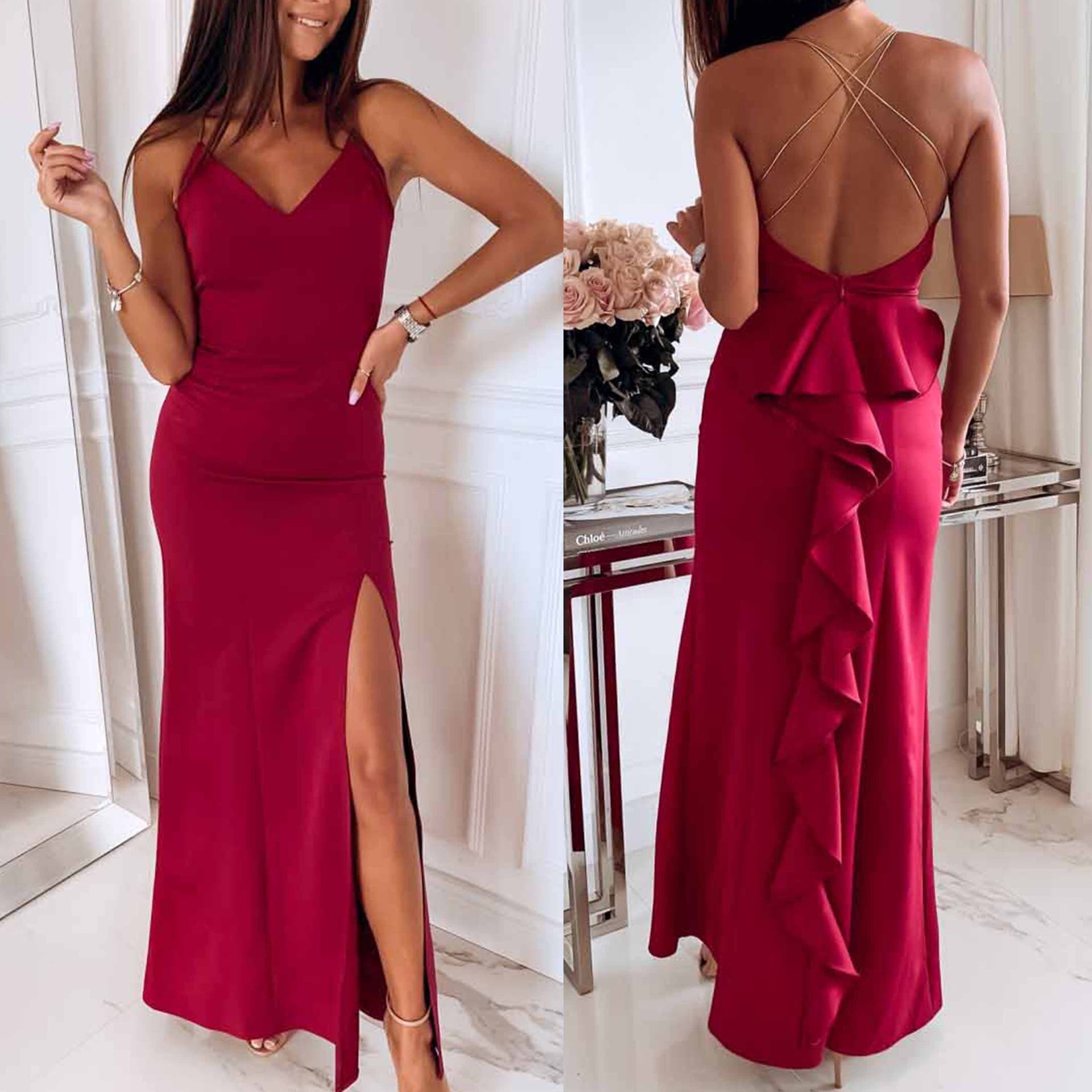 Women Party Night Maxi Dress Women Sexy Off The Shoulder Ruffled Ruffled Backless High Split Women Dress Sexy Dress - Hplify