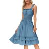 Crafted with care, this dress boasts a composition of synthetic fiber, ensuring both durability and comfort. The lace closure adds a touch of romance to your look, while the square collar and spaghetti strap sleeves exude sophistication and allure.