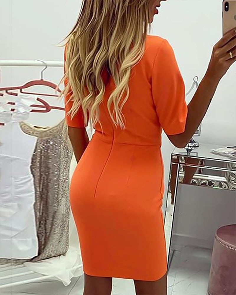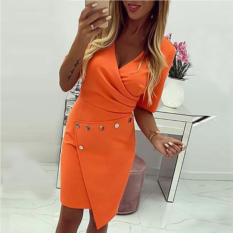 Women ruched surplice wrap bodycon dress Asymmetrical hem office lady sheath solid Elegant Dress summer dresses - Hplify