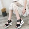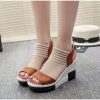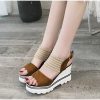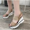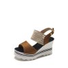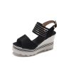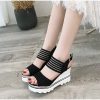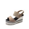 Women Sandals Wedges Platform Peep Toe Sandals Ladies Ankle Strap Buckle Strap Stretch Fabric Summer Shoes Female Fashion