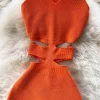 Women Sexy Cut Out Knit Dress V Neck Slim Fit Mid Calf Summer