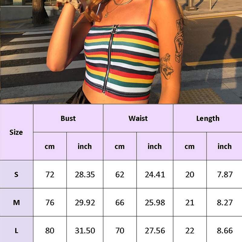 Women Sexy Tank Top Vest Blouse Sleeveless Summer Zipper Crop Top Shirt Cami Top Casual Rainbow Stripe Shirt
