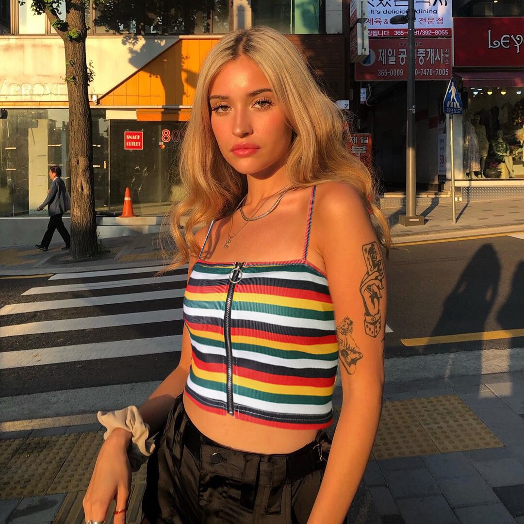 The Best Women Sexy Tank Top Vest Blouse Sleeveless Summer Zipper Crop Top Shirt Cami Top Casual Rainbow Stripe Shirt Online - Hplify
