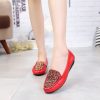 Fashion Genuine Leather Summer Shoes Woman Flats Low Heel Hook&Loop Hollow Out Leather Soft Flat Shoes For Ladies