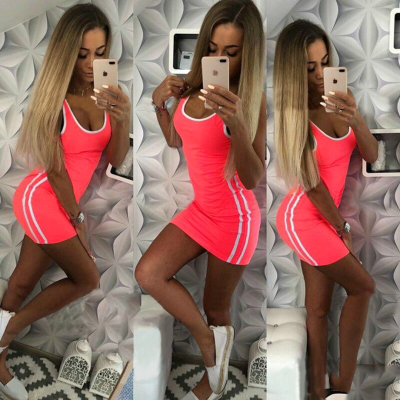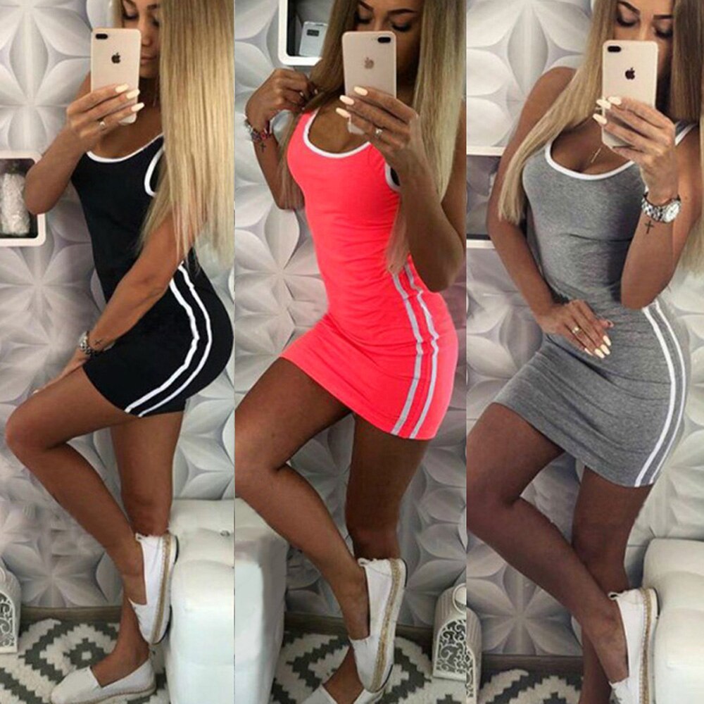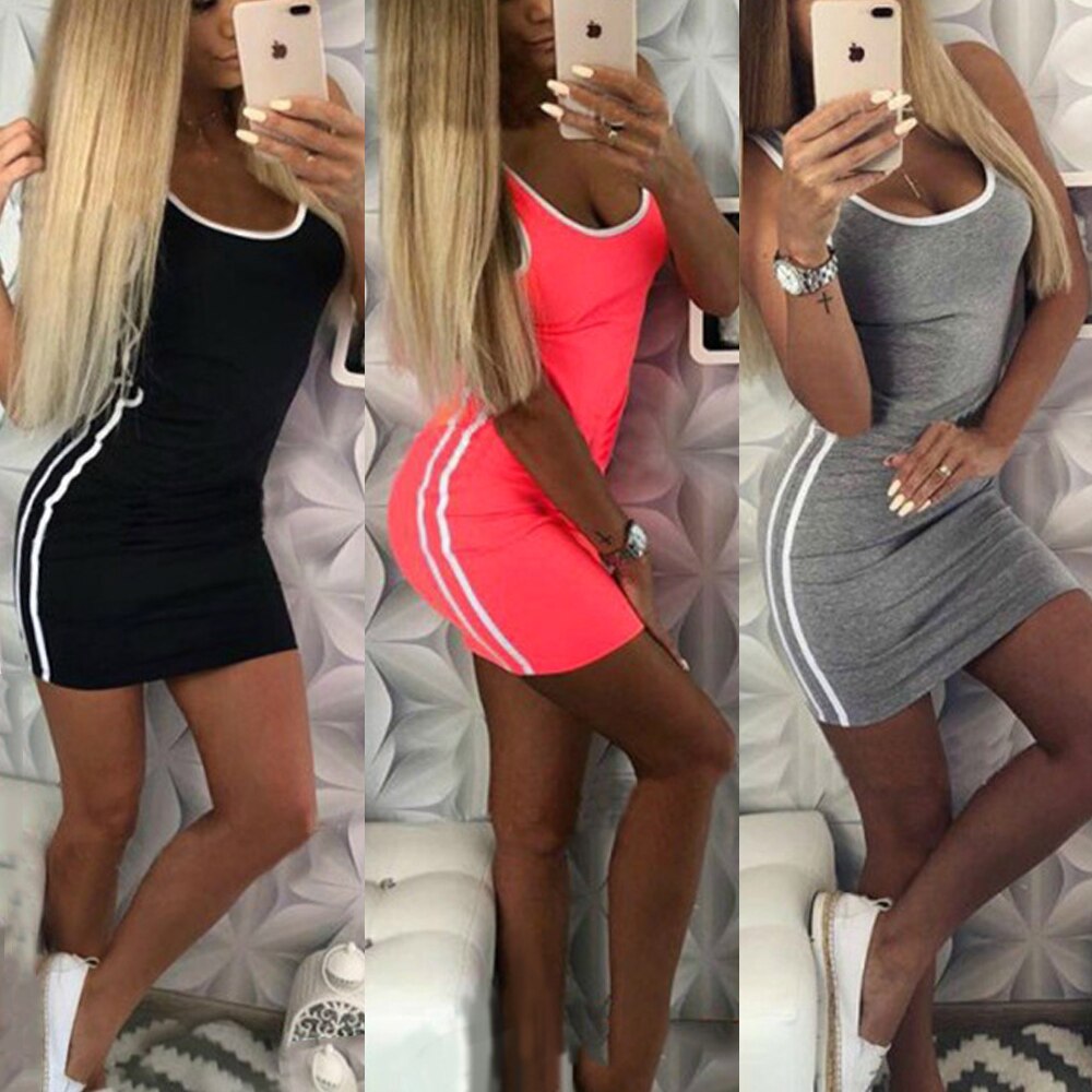 The Best Women Short Mini Slim Dress Summer Beach Holiday Sexy Bodycon Casual Sleeveless Solid Casual Tank Dress Sundress New Online - Hplify