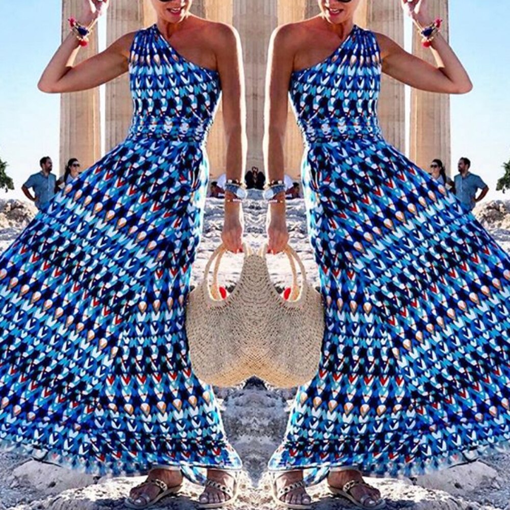 The Best Women Sleeveless One Shoulder Floral Boho Long Maxi Dress Summer Ladies Party Beach Split Maxi Dress Clothing Online - Hplify