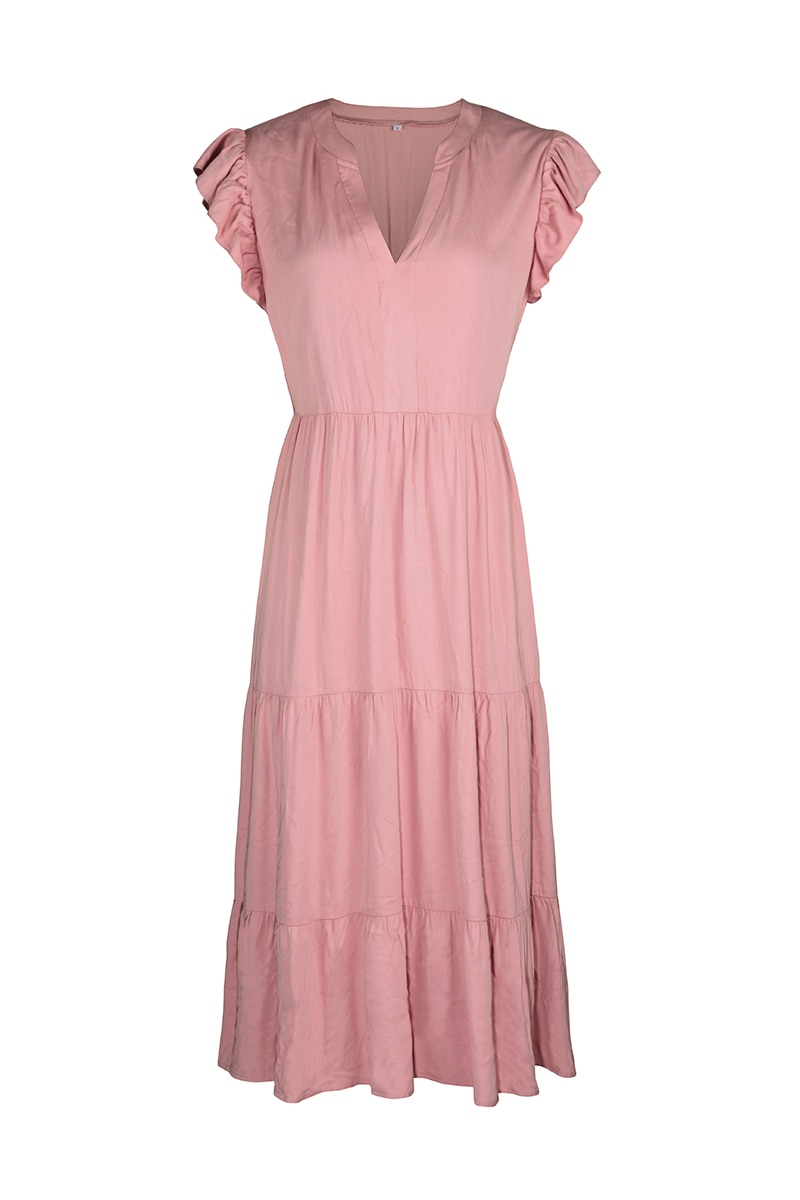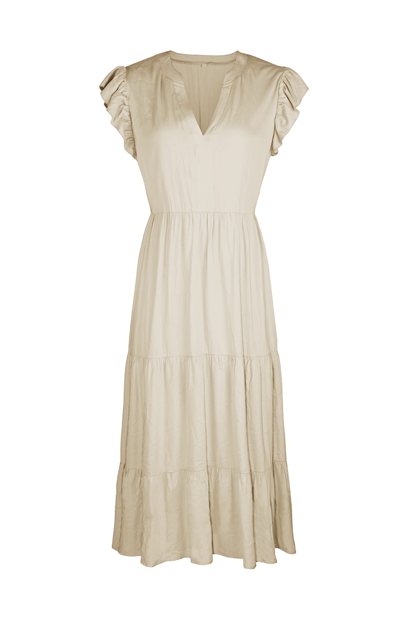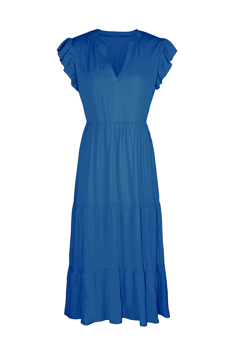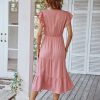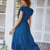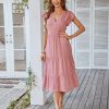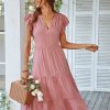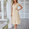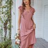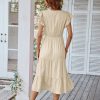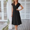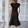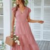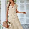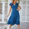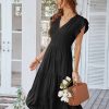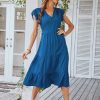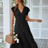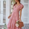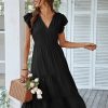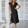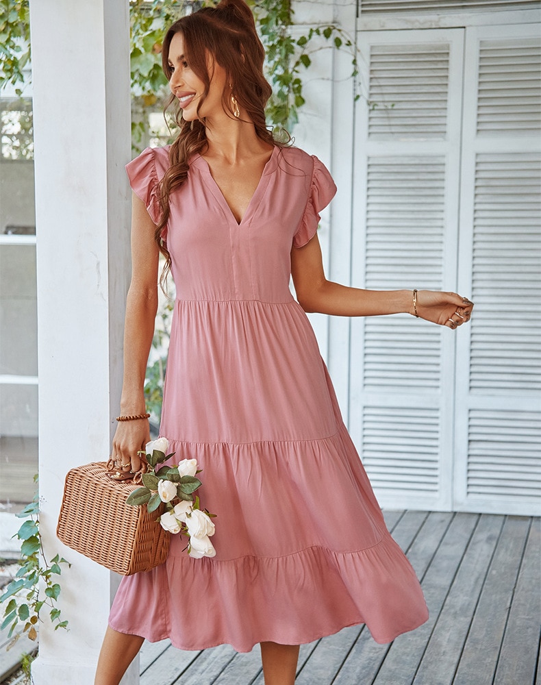 Women Spring Summer Leisure Vacation A Line Dress V Neck Sexy Flying Sleeve Solid Color Dresses