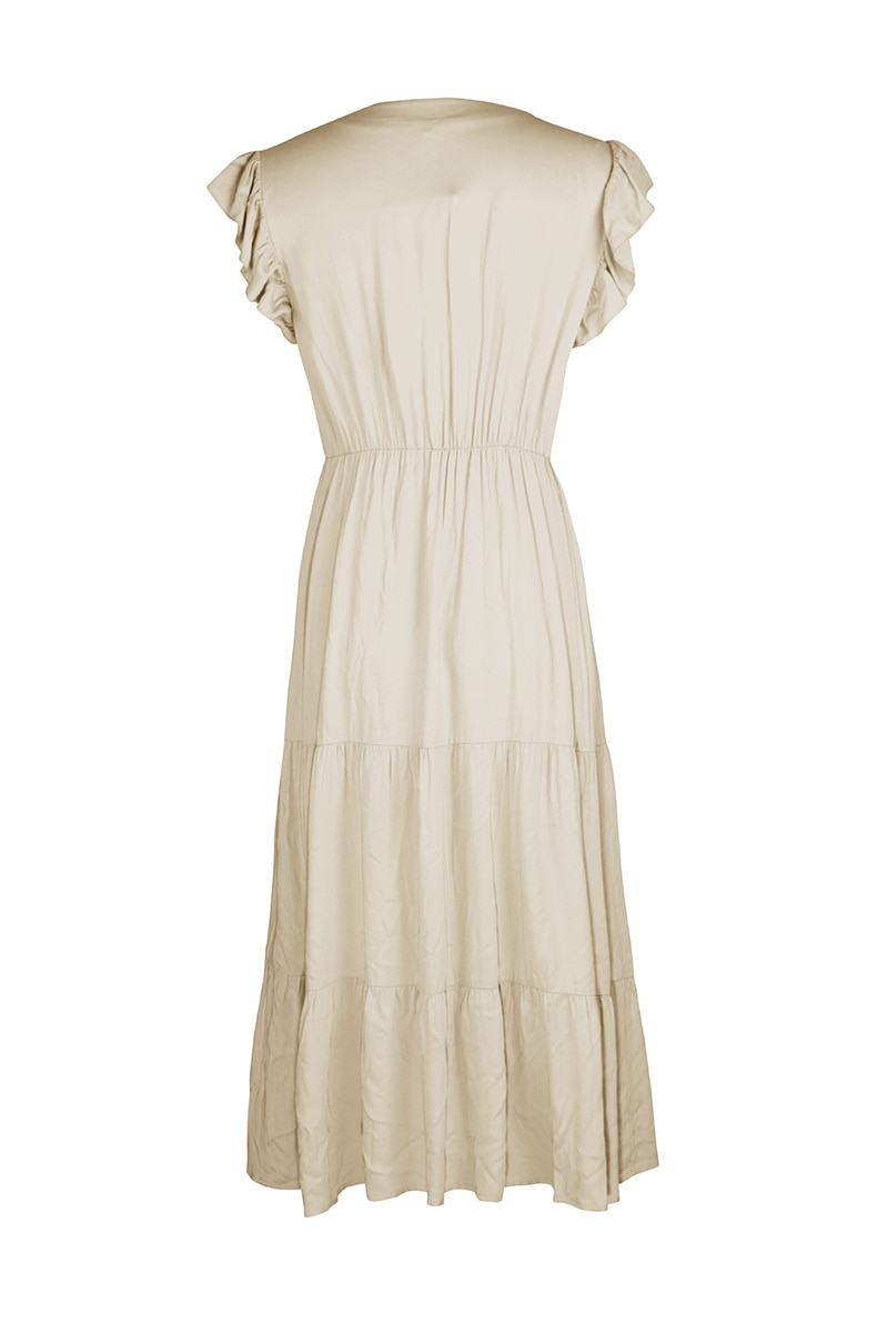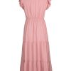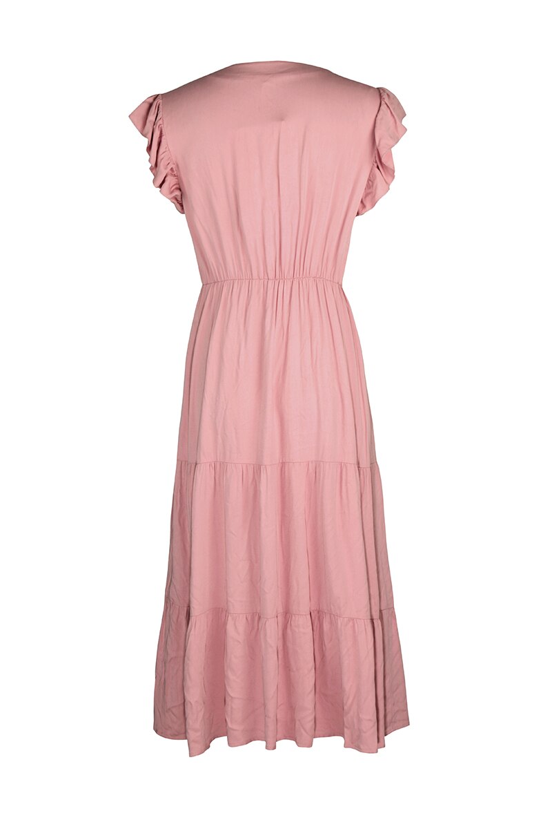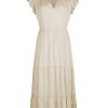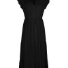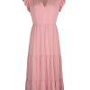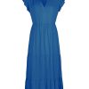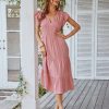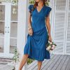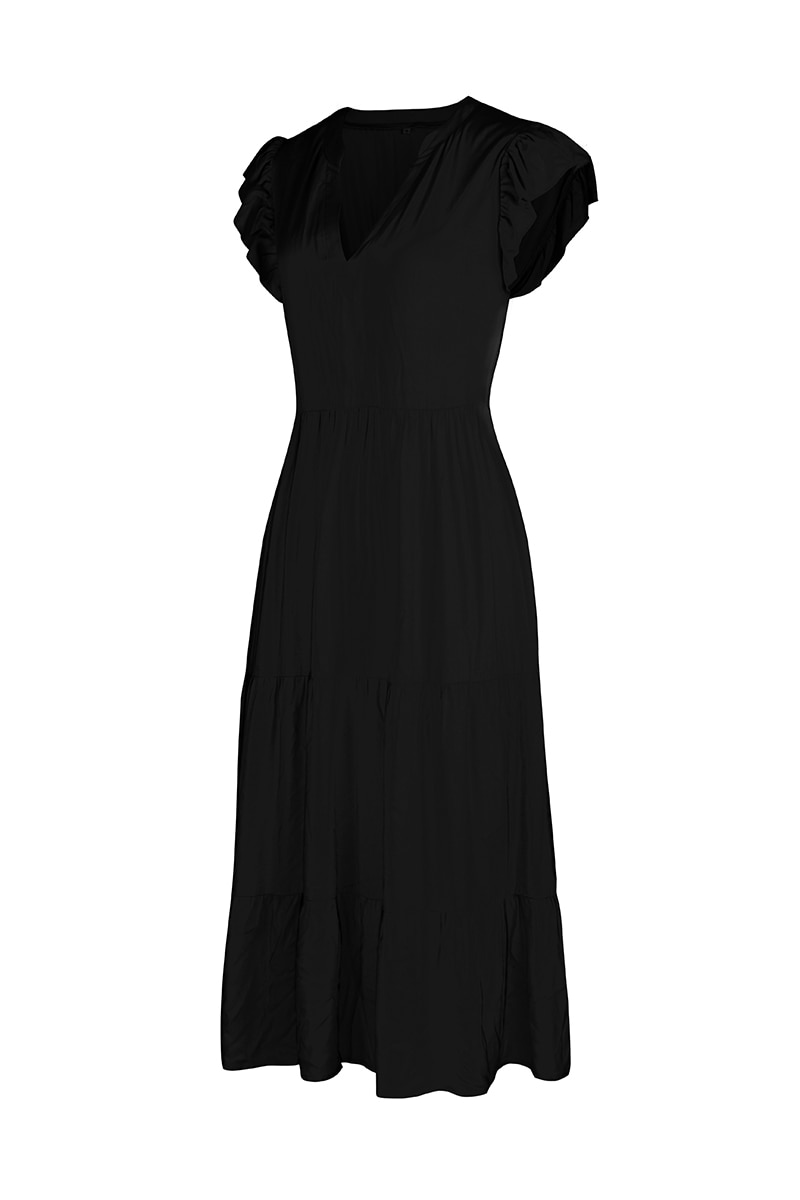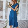 Women Spring Summer Leisure Vacation A Line Dress V Neck Sexy Flying Sleeve Solid Color Dresses