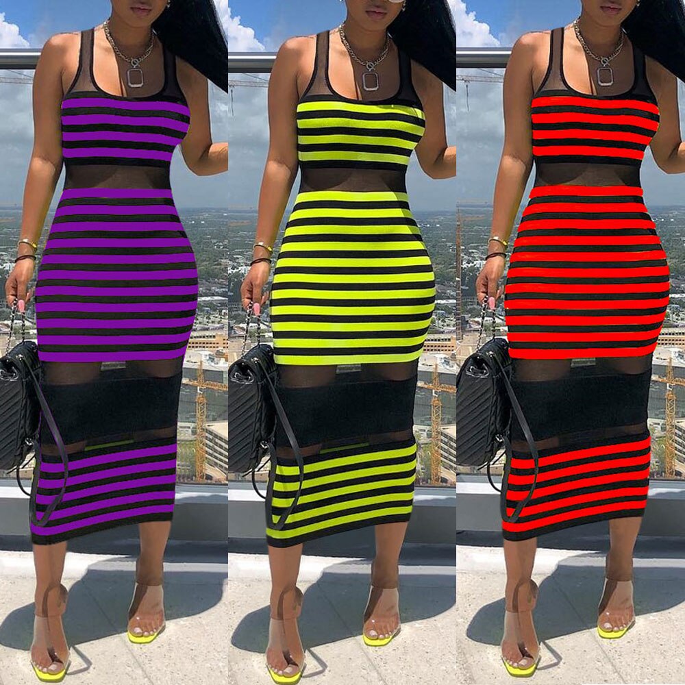 The Best Women Striped Sleeveless Bandage Bodycon Dress Summer Beach Ladies Casual  Holiday Party Slim Dress Sundress Online - Hplify