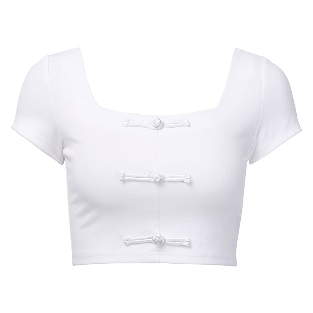 The Best Women Summer Beach Short Sleeve Square Neck T-Shirt Ladies Sexy Slim Crop Tank Top Casual Outwear Streetwear Online - Hplify