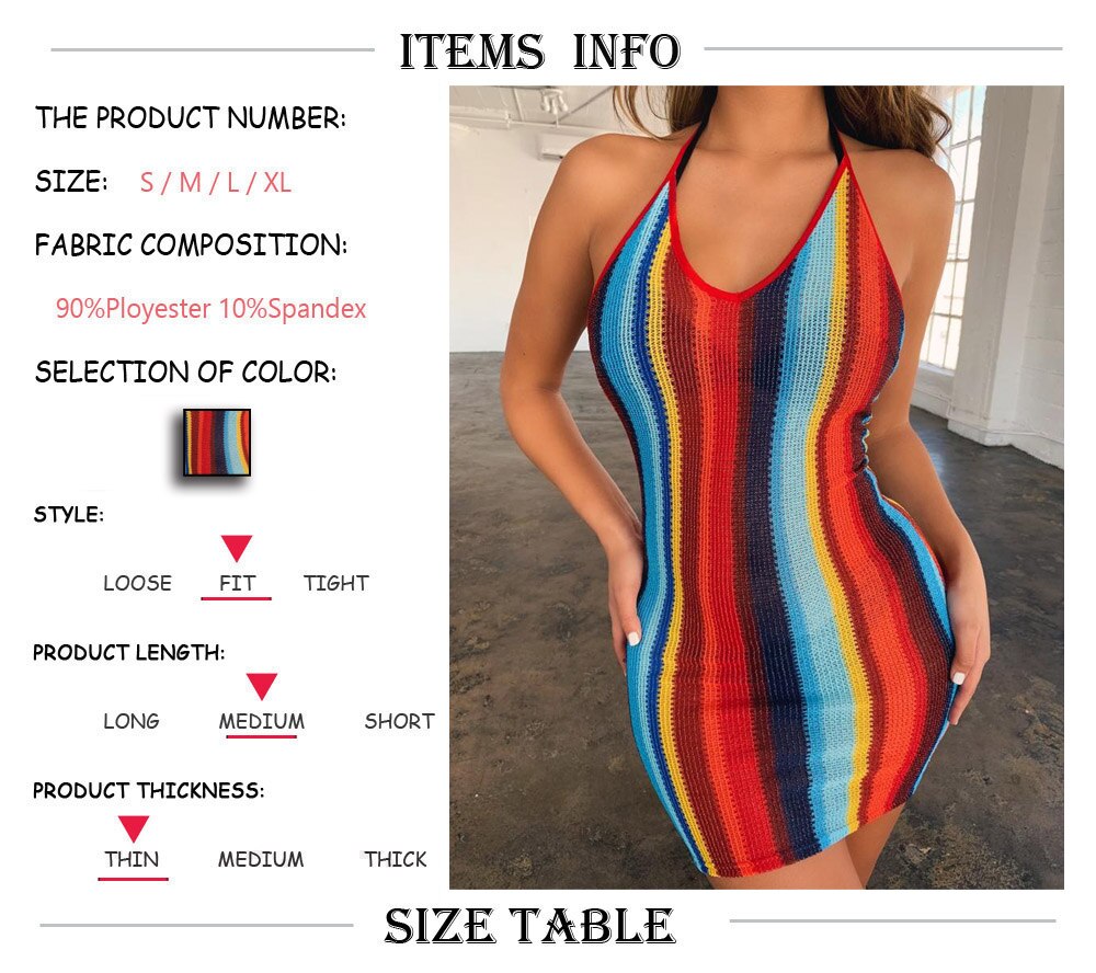 Women Summer Clothes Sexy Halter Backless Sleeveless Colorful Stripe Bodycon Tunic Mini Dress Elegant Party Club Wrap Dresses - Hplify