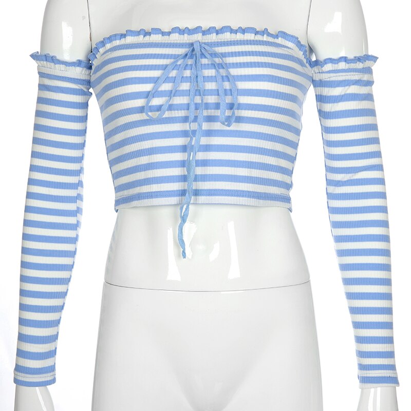 Women Striped Casual Off Shoulder Vest Blouse Crop Top Shirt