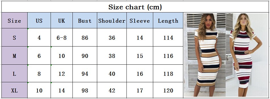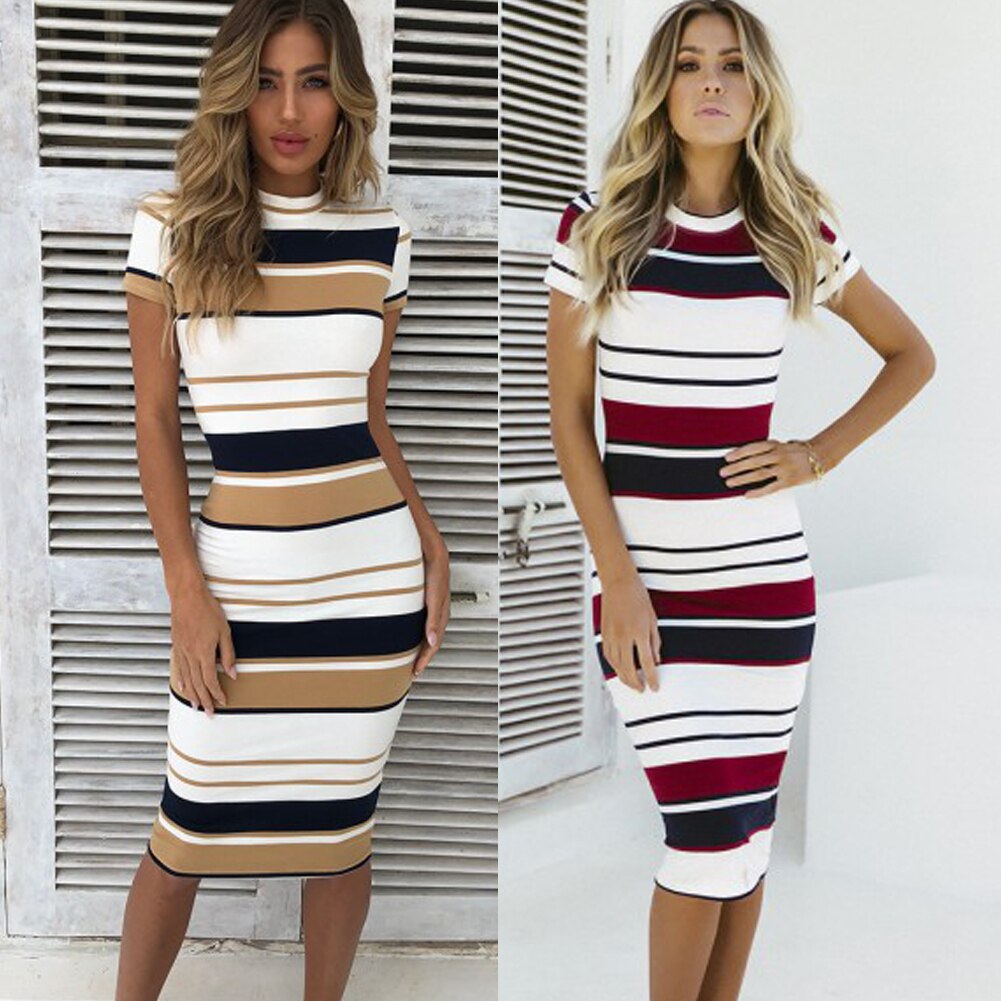 The Best Women Summer Stripe Bodycon Dress Vestidos Short Sleeve Ladies Knee Length Dress Plain Jersey Stretch Basic Dress Online - Hplify