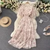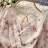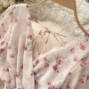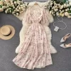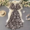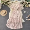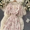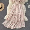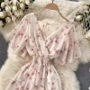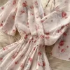 Women Summer V Neck Floral Print Chiffon A Line Beach Dress