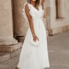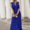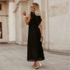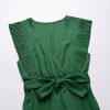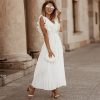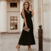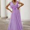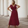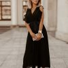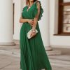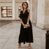 Women V Neck Ruffle Sleeve Solid Color A Line High Waist Casual Long Dress For Fashion