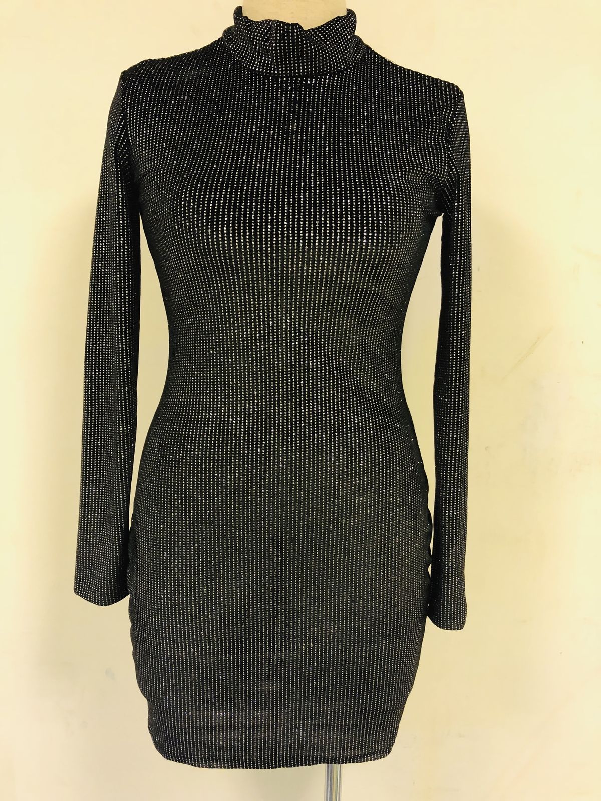 Women Long Sleeve Turtle Neck Sequin Jumper Knitwear Slim Mini Dress