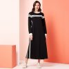 Womens Casual Dress Black White Patchwork Plus Striped O Neck Long Sleeve Maxi Dresses - Image 2