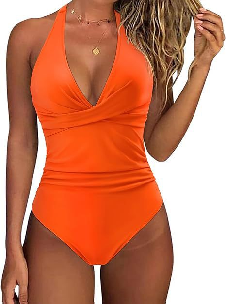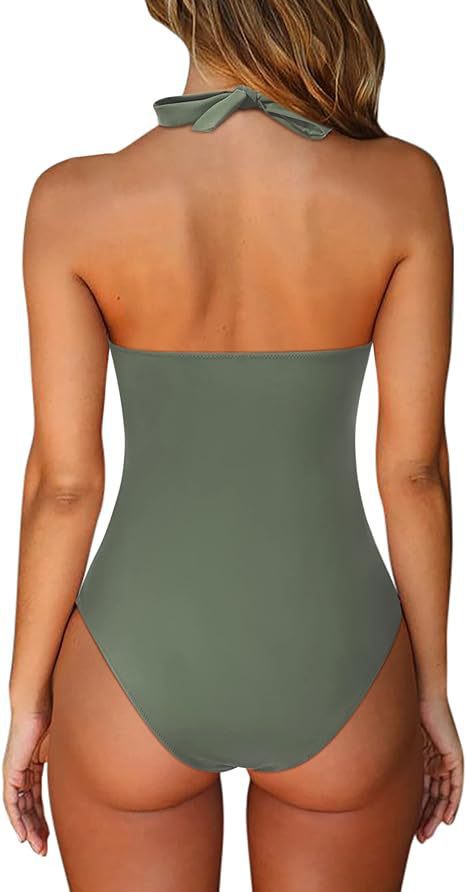 Womens Color Block One Piece Swimsuit Crisscross Padded QuickDry HighElastic