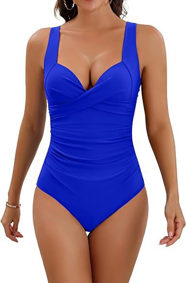 This women’s one – piece swimsuit offers a flattering cross – front design, open back, and tummy – control fit to smooth your silhouette. It includes removable pads (no underwire) for customizable support. Made with 82% polyester and 18% spandex, it’s soft, stretchy, and perfect for swimming, wading sports, or relaxing by the pool. Choose from colors like Black, Military Green, Peacock Blue, Blue, or Fuchsia—this spring 2026 style works for summer adventures too!