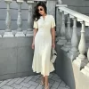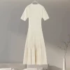 Womens Elegant Knit O-Neck A-Line Dress Short Sleeve Ankle-Length