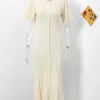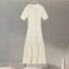 This Women’s Elegant Knit O-Neck A-Line Dress is a must-have for your spring and summer wardrobe. It features a classic O-neck design and an A-line silhouette that flatters any body type. The short sleeves and ankle-length hem make it perfect for both casual outings and semi-formal events. The dress is made from polyester, ensuring comfort and durability. The button decoration adds a touch of elegance.