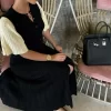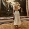 - Design Details: O-Neck, empire waistline, short sleeves, button decoration, A-Line silhouette