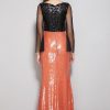Women's Evening Party Prom Slash Neckline Long Sleeves Appliques Sequined Patchwork Maxi Elegant Dresses - Image 2