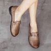 Flats Women Shoes Mixed Colors Genuine Leather Lace-Up Retro Round Toe Shallow Concise Handmade Ladies Shoes