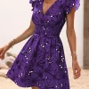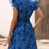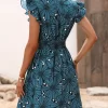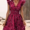 Womens Floral Print Summer Mini Dress O-Neck Loose Fit Beach Style