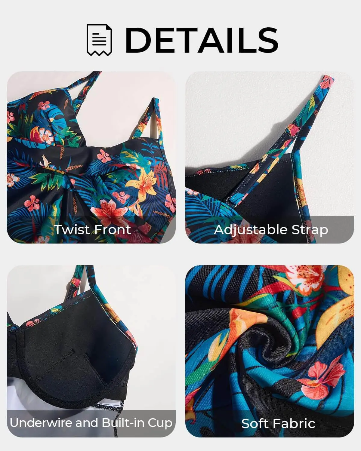 Women’s Floral Tankini Swimsuit Padded No Underwire Two Piece
