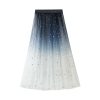 Skirt new gradient color fashion mid-length color matching star sequins elastic waist mesh starry sky skirt for women