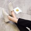 Breathable Genuine Leather Summer Shoes Woman Flat Heel Hollow Out Flats Slip On Shoes For Women Soft