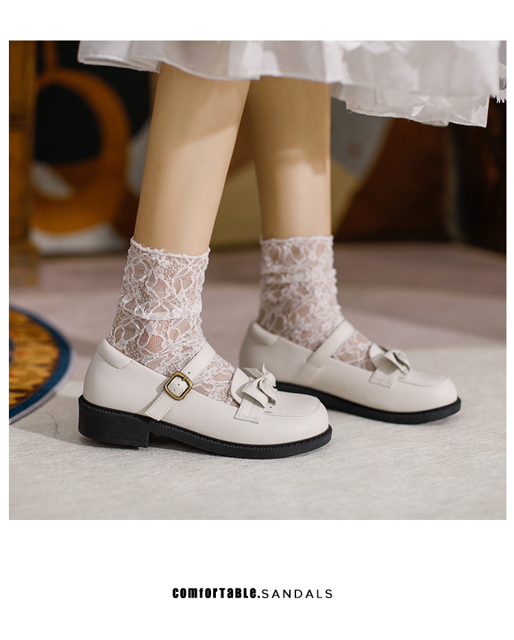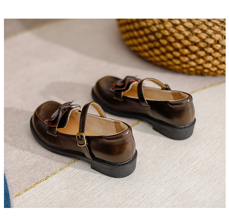 - Design Details: Round toe, bow detail, buckle strap, shallow mouth (below 7cm), low – top, flat heel, buckle closure