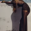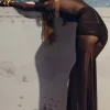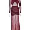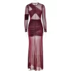 Womens Long Sleeve Floor Length Club Dress Polyester Spandex
