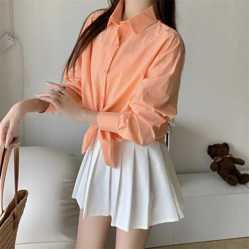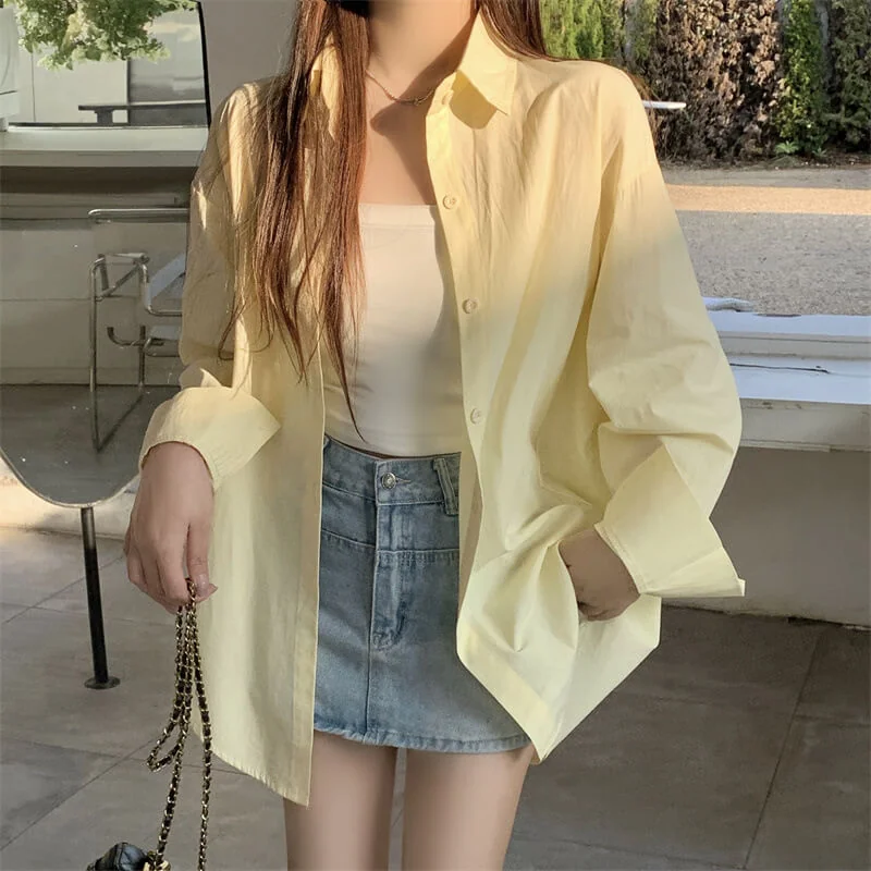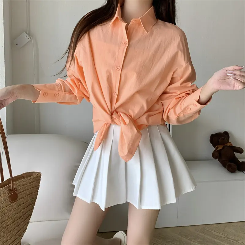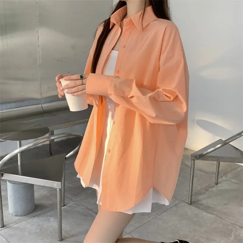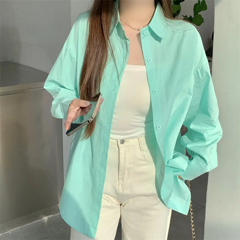 Upgrade your workwear and casual wardrobe with this chic French – inspired loose – fit shirt! It has a classic polo collar, long shirt sleeves, and a single – row multi – button placket. This elegant top gives a relaxed and high – end look, which is perfect for the office, coffee runs, or layered styling. You can choose from 11 vibrant solid colors (including a matching white camisole) to mix, match and show your style. The soft and breathable fabric (with 95% + main fabric content) keeps you comfortable from spring to summer and beyond, allowing you to effortlessly combine urban sophistication with everyday ease!