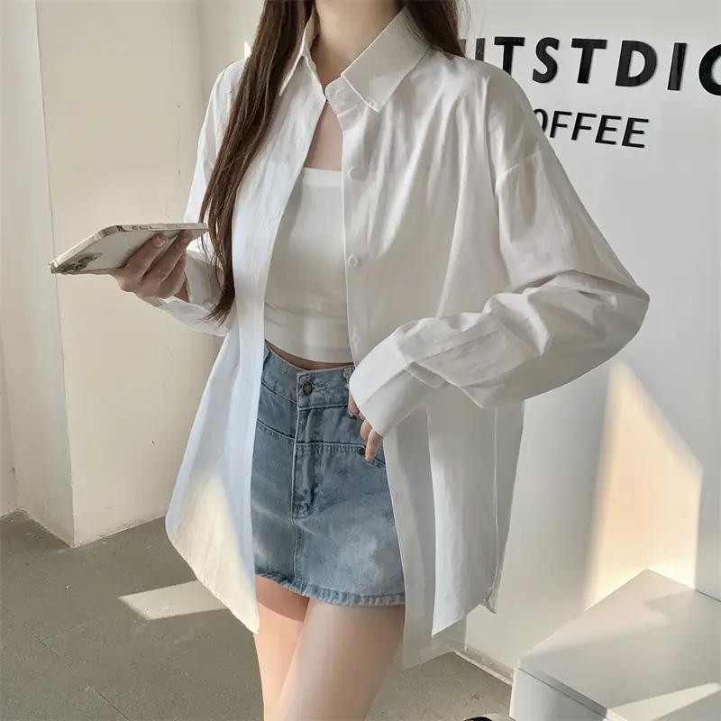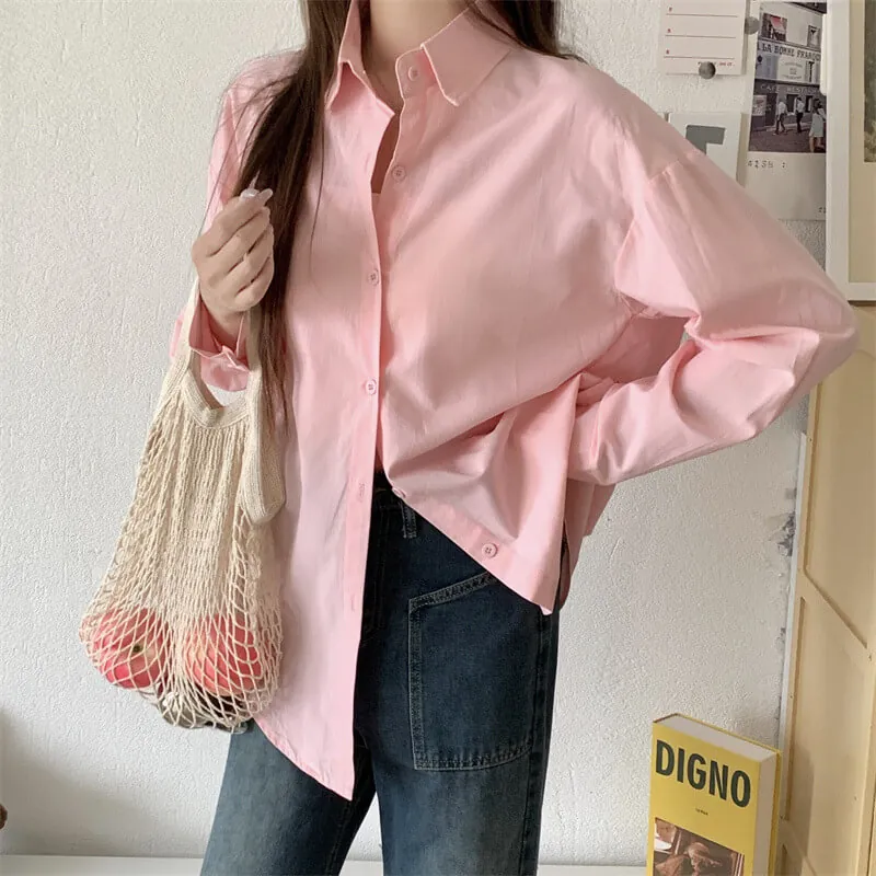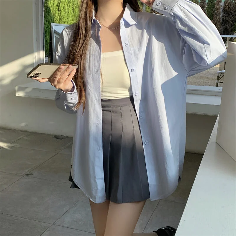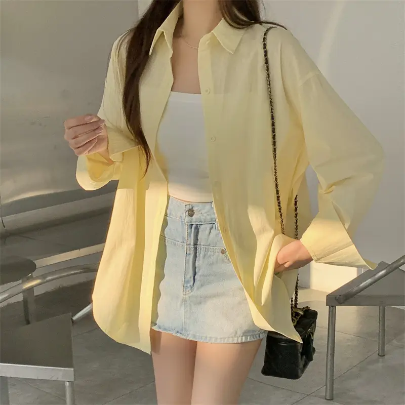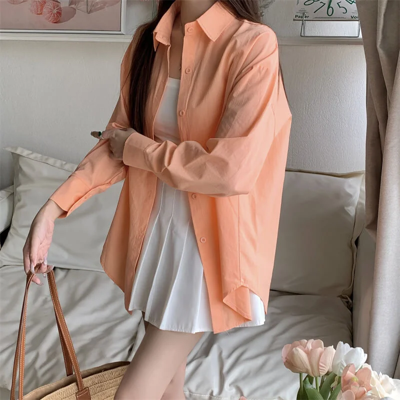Upgrade your workwear and casual wardrobe with this chic French – inspired loose – fit shirt! It has a classic polo collar, long shirt sleeves, and a single – row multi – button placket. This elegant top gives a relaxed and high – end look, which is perfect for the office, coffee runs, or layered styling. You can choose from 11 vibrant solid colors (including a matching white camisole) to mix, match and show your style. The soft and breathable fabric (with 95% + main fabric content) keeps you comfortable from spring to summer and beyond, allowing you to effortlessly combine urban sophistication with everyday ease!