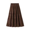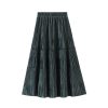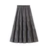 Autumn high waist velvet pleated skirt mid-length long skirt gold velvet skirt women look thin